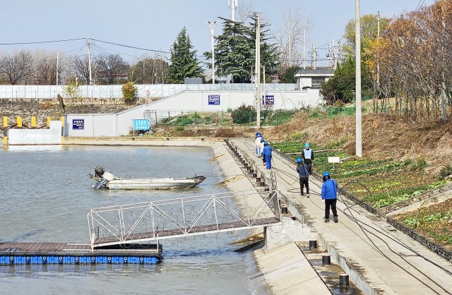 12月16日,室外气温降至零摄氏度以下的第一天,在位于高邮湖畔的河湖调度闸附近,国网高邮市供电公司城郊供电所组织10多名施工人员冒着严寒迁移杆线,为高邮市京杭运河管理处拟新建办公用房“让道”。