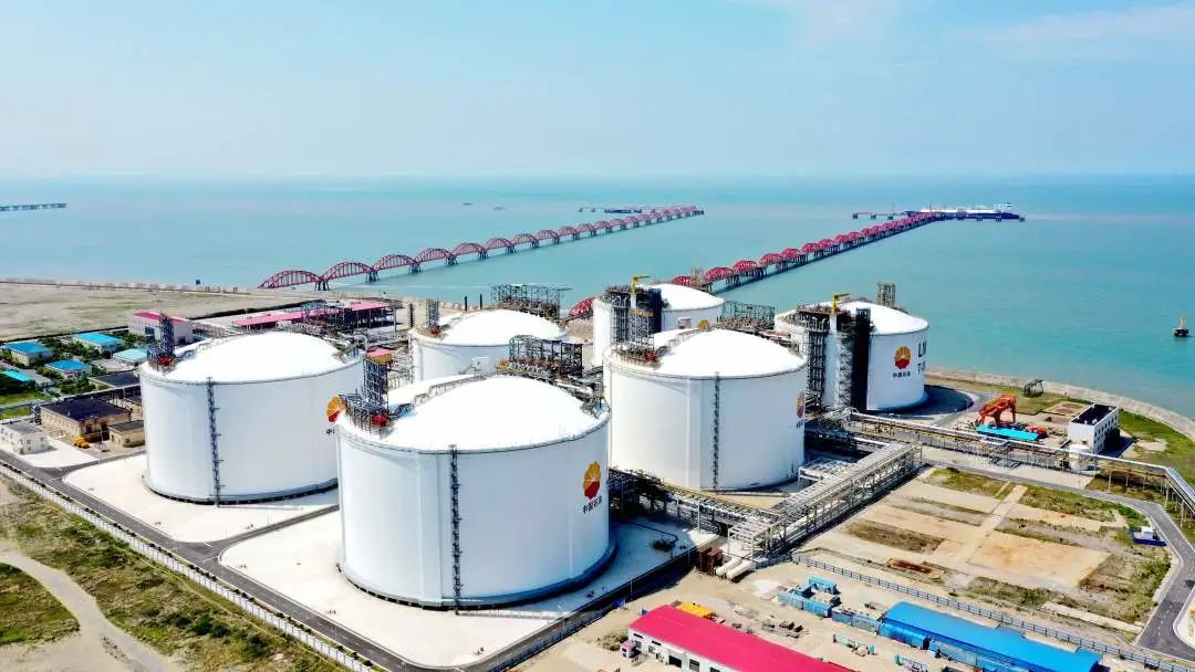 矗立在江苏如东洋口港阳光岛上的LNG接收站。