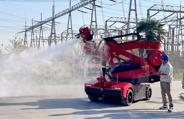 11月24日,全市首台智能高喷消防机器人在500千伏变电站端正式投入使用。