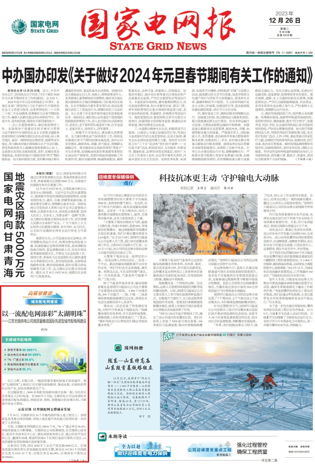 《国家电网报》头版刊登:以一流配电网添彩“太湖明珠”——江苏无锡供电公司高质量推进国际先进型城市配电网建设