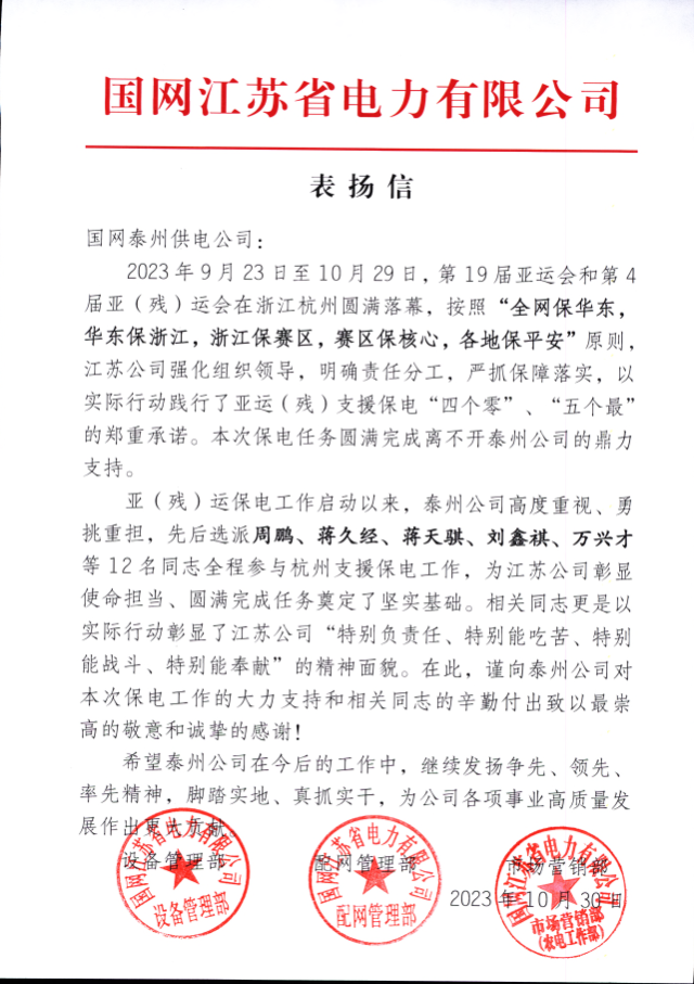 9月23日至10月29日期间,输电运检中心选派人员全程参与杭州亚运会保电工作。
