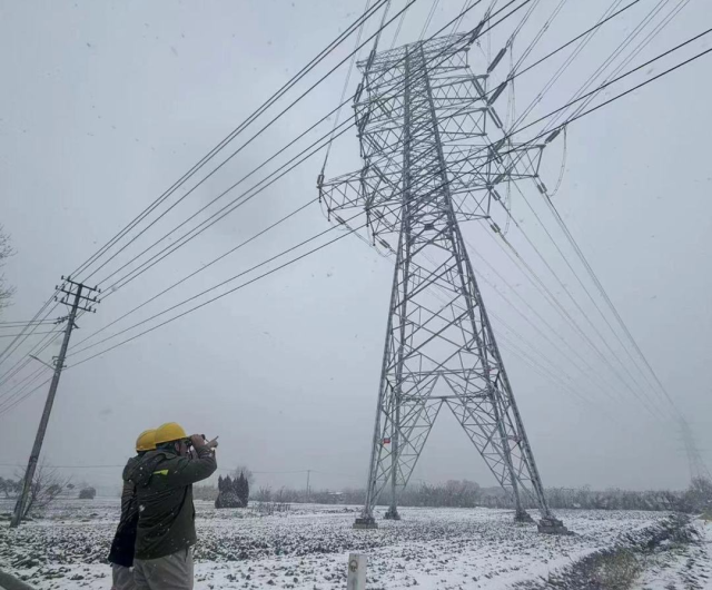 12月18日,输电运检中心开展雪天线路特巡,重点排查三跨段导线及绝缘子覆冰、线下大棚加固情况。