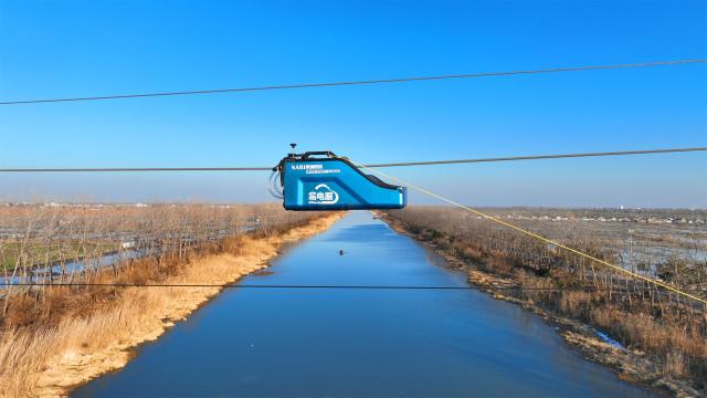 近日,在扬州宝应县射阳湖镇35千伏天安384线24#-25#之间的输电线路上,国网宝应县供电公司利用裸导线绝缘涂覆机器人对该段线路跨河两岸的部分输电线路进行绝缘涂覆,降低该段线路下钓鱼触电风险,保障线路稳定运行。据悉,这是宝应电网首次对输电线路试点开展绝缘涂覆。