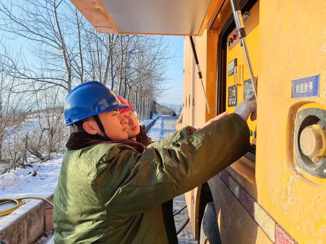 15日晚10时,小分队来到垣曲县皋落乡居民区,车子一停,队员们立刻裹上军大衣,冲进风雪,他们在居民区附近勘察作业,根据现场环境及发电车负载情况制定发电方案,选取最佳并网点后开始并网发电作业。