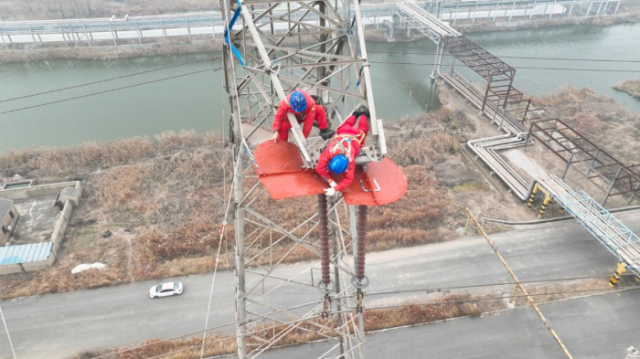 1月14日,盐城地区首条220千伏线路-220千伏围联4W84线复合绝缘防鸟罩安装工作顺利完成。针对2023年涉鸟跳闸频发多发状况,国网盐城供电公司组织各运维单位详细分析每起跳闸的原因,组织学习省公司《国网江苏省电力有限公司设备管理部关于印发提升输变电设施防鸟害工作水平指导意见的通知》,并下发关于