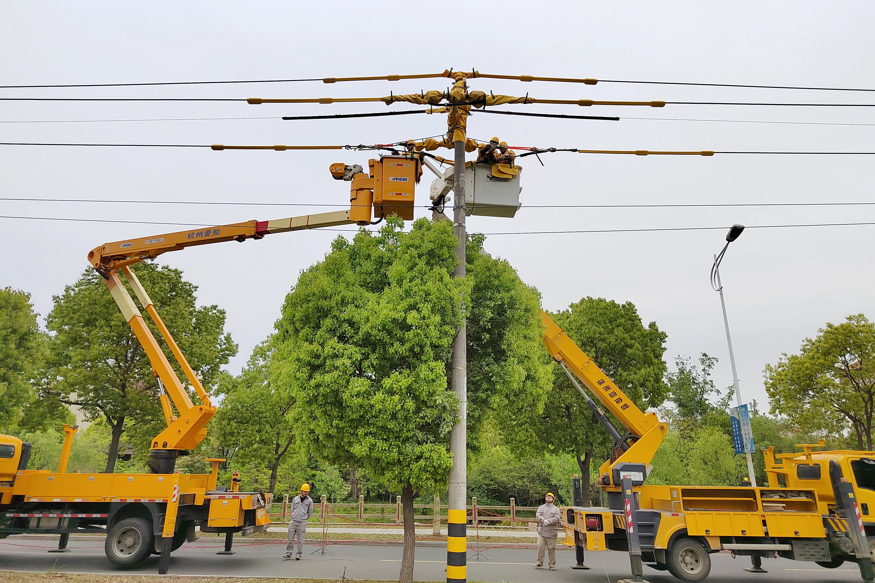1月8日,国网仪征市供电公司对345国道仪征市新集段电力线路迁改处实施带电作业,同日对同杆双回10千伏蔡北121线和10千伏蔡桥113线实施了断、接带电作业,大幅缩小了因电力改造施工导致的停电范围。
