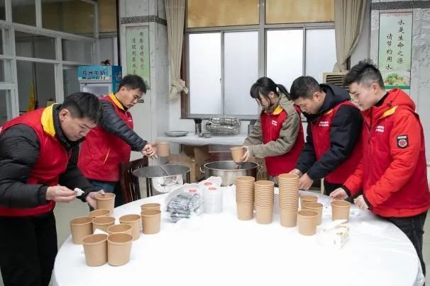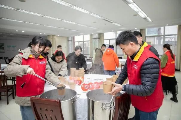 上午,“金香橼”共产党员服务队队员开始忙碌起来,用精选的红枣、糯芋、莲子、红豆等传统食材,把热忱舀进冬风,熬出一碗碗香气四溢的腊八粥,为这个寒冷的季节带了一丝温暖和关怀。