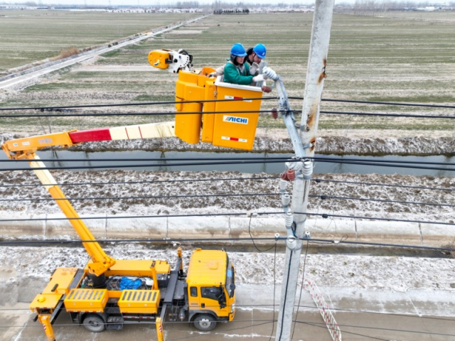 上周,一场突如其来的寒潮席卷了全国多个地区,受影响的地区采取了多项措施,以确保冬季节日期间安全稳定的电力供应。气温的突然下降导致了冻雨和某些电网设备的故障。“道路和电线杆上覆盖着厚厚的一层冰,使我们的维修人员无法爬上电线杆,”国家电网宿迁供电有限公司现场维修人员戴成弟说。为应对严