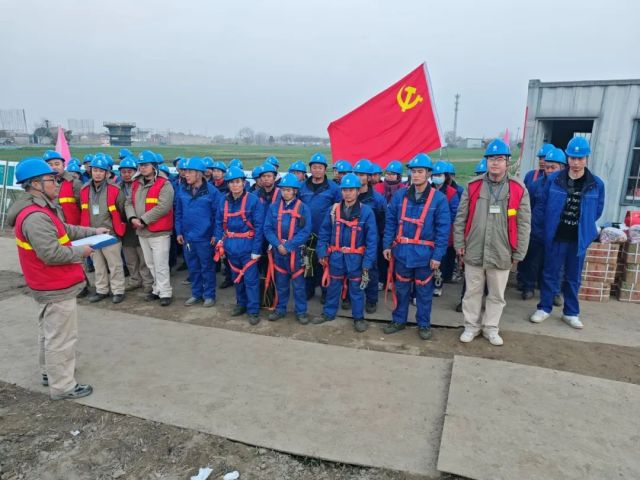作为春节期间江苏地区持续时间最长的停电施工作业,本次施工风险等级高、管控要求严、协调难度大,接到建设任务后,安泰分公司迅速响应,成立共产党员突击队,线路专业全员出动,春节期间全员到岗履职,全方位保障现场施工安全,确保施工任务高质量完成。